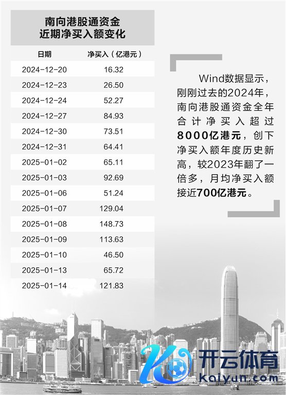 参预2025年以来,港股通资金“扫货”港股的势头不仅未放松,还进一步加强。据Wind统计口径,拆除昨日,南向港股通资金已勾搭18个往返日净买入,日净买入金额更频频向上100亿港元。值得细巧的是,就在上周,南向港股通资金周度净买入额达489亿港元,创出近四年的周度新高。2025年头于今不到半个月的时刻,南向港股通累计净买入额已向上800亿港元,向上2024年月均净买入额。
